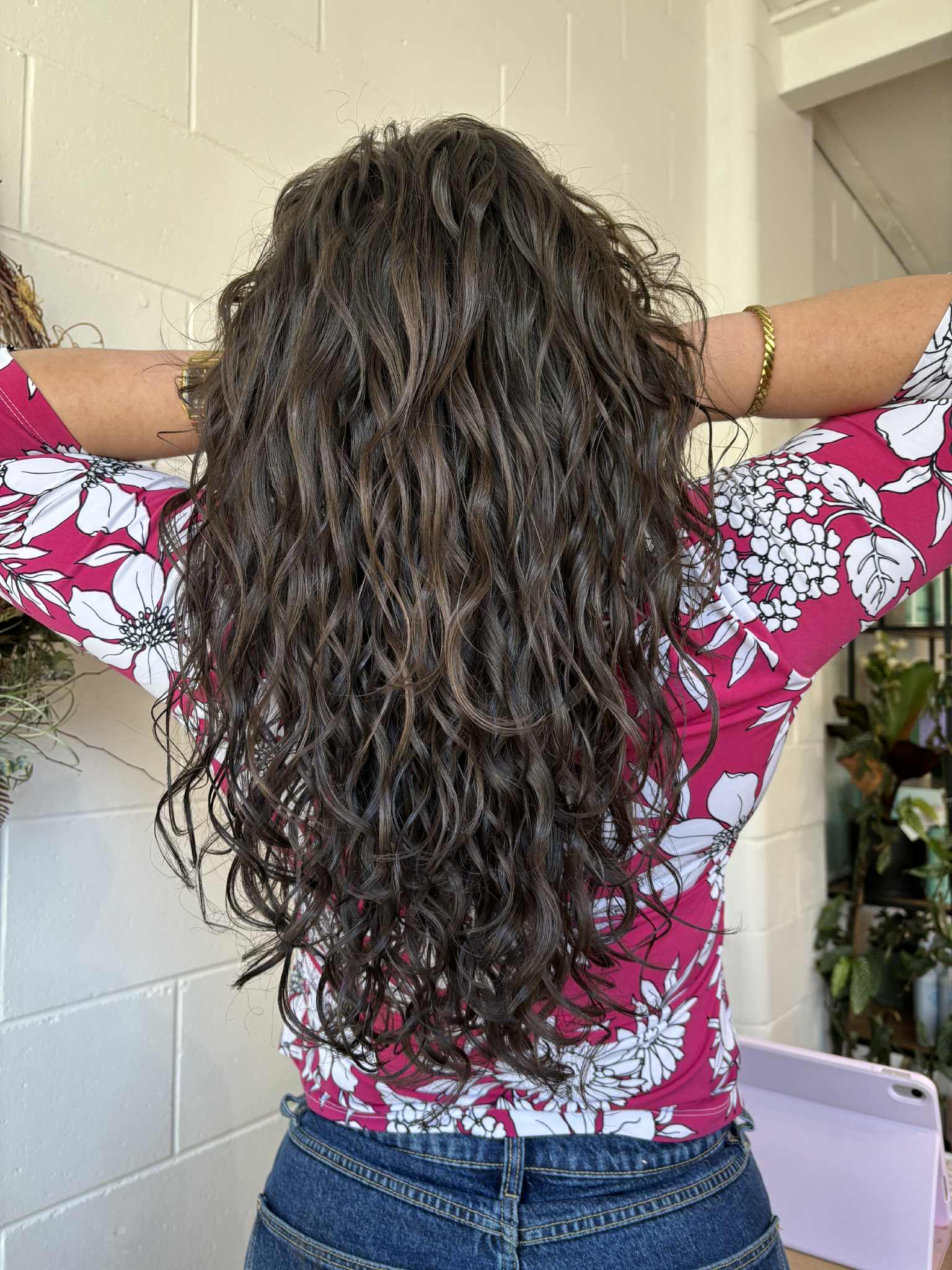 The Malibu C Curl Partner Wellness Remedy uses a freshly activated vitamin C complex to gently remove hard-water minerals and buildup, restoring bounce, shine, and definition while priming curls for colour, perms, or hydration services. Alongside this, the Olaplex No.1 & No.2 Treatment works deep within the hair to repair and strengthen bonds, helping prevent breakage, improve elasticity, and restore overall health. Depending on your hair’s needs, one or both treatments may be used - because curls are never one-size-fits-all. -